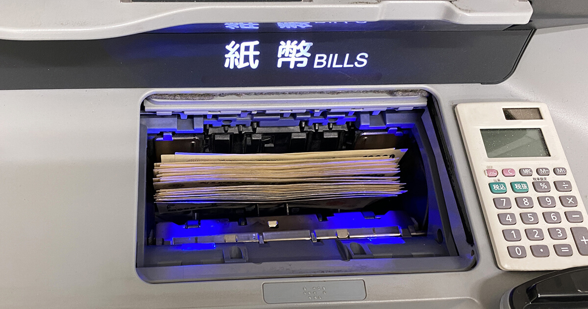 窓口のお姉さんが見事にお札を数えるのを見届け、